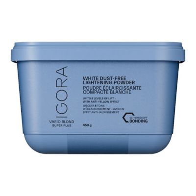 Delivering up to 8 levels of lift and precise neutralisation, IGORA VARIO BLOND SUPER PLUS Powder Lightener is a high-performance lightening powder that features integrated FibreBond Technology. This reinforces bonds within the hair fibre to reduce hair breakage during and after processing – no bonding additive needed! Use IGORA VARIO BLOND with IGORA ROYAL Oil Developer (3%, 6% or 9%*).