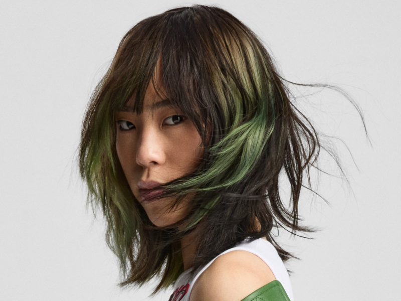For the Chunky Halo look, brightness is built with IGORA VARIO BLOND Plus using 3% | 10 vol. and 6% | 20 Vol. Bold chunks are then coloured with IGORA VIBRANCE 9.5-98 + 7-77 (2:1) and 1.9% | 6 Vol. for a high-impact, statement look.