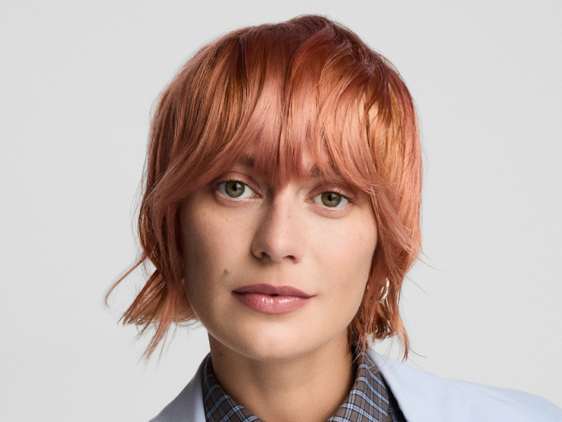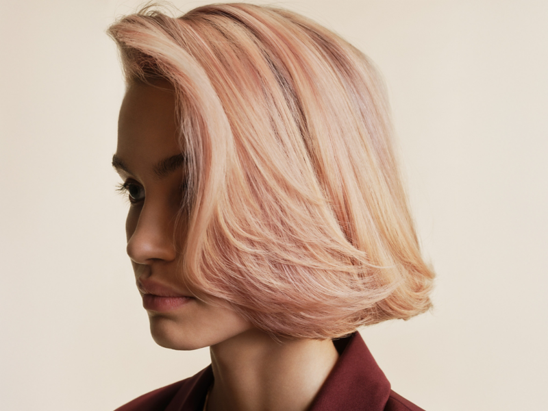 For the Polychrome Peach look, brightness and clarity are first created with IGORA ROYAL Highlifts 10-1 and 12% | 40 Vol. Gentle refinement and controlled lift follow using Bond Enforcing Color Remover with IGORA VIBRANCE Activator Lotion 1.9% | 6 Vol. Soft peach dimension is then built with Chroma ID 9.5–19 + 8-46 + Pink, while deeper peachy warmth comes from Chroma ID 9.5-4 + 7-77. The finish combines Chroma ID 9.5–4 + 7-77 + Pink for a luminous, multi-tonal peach glow.